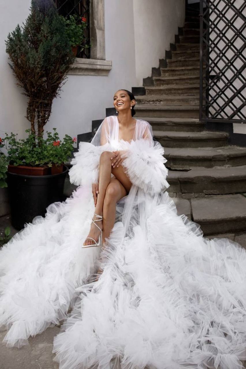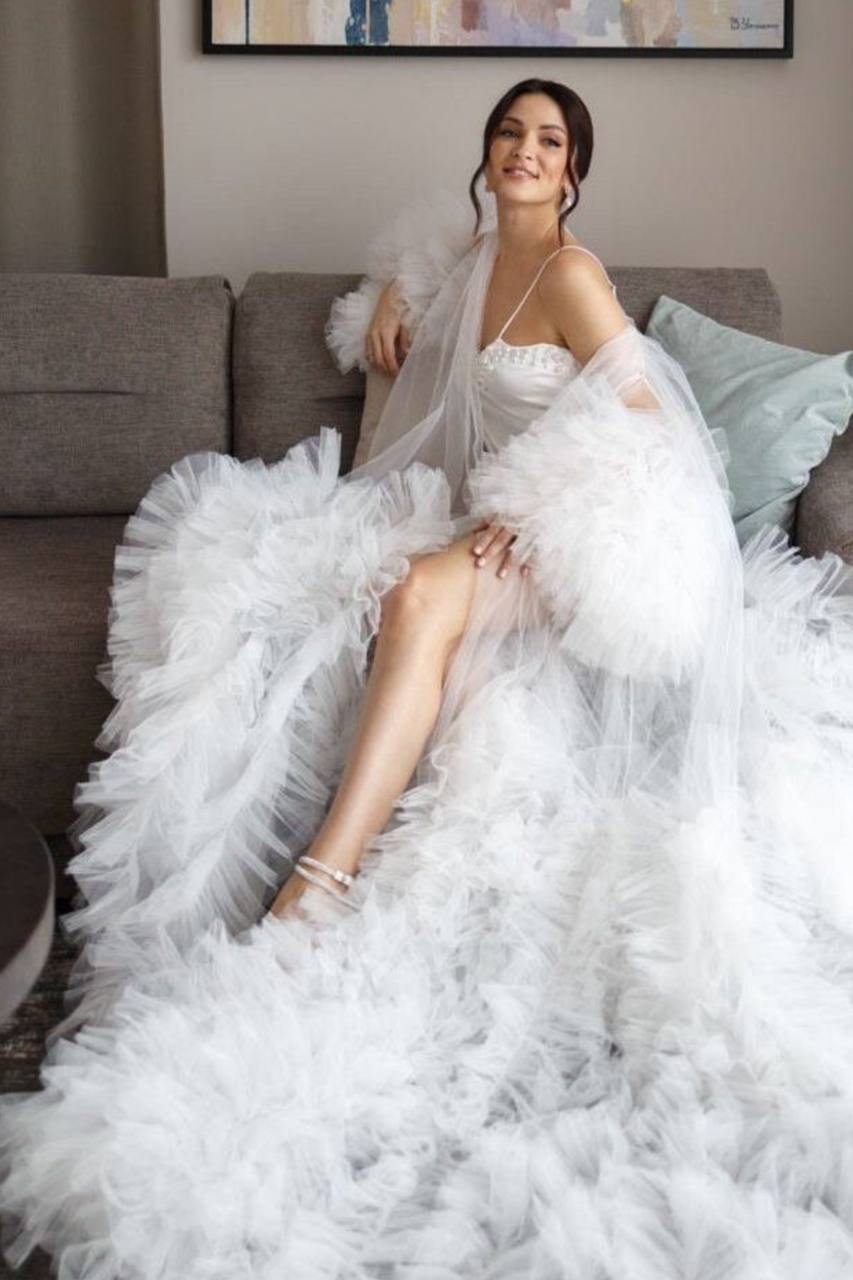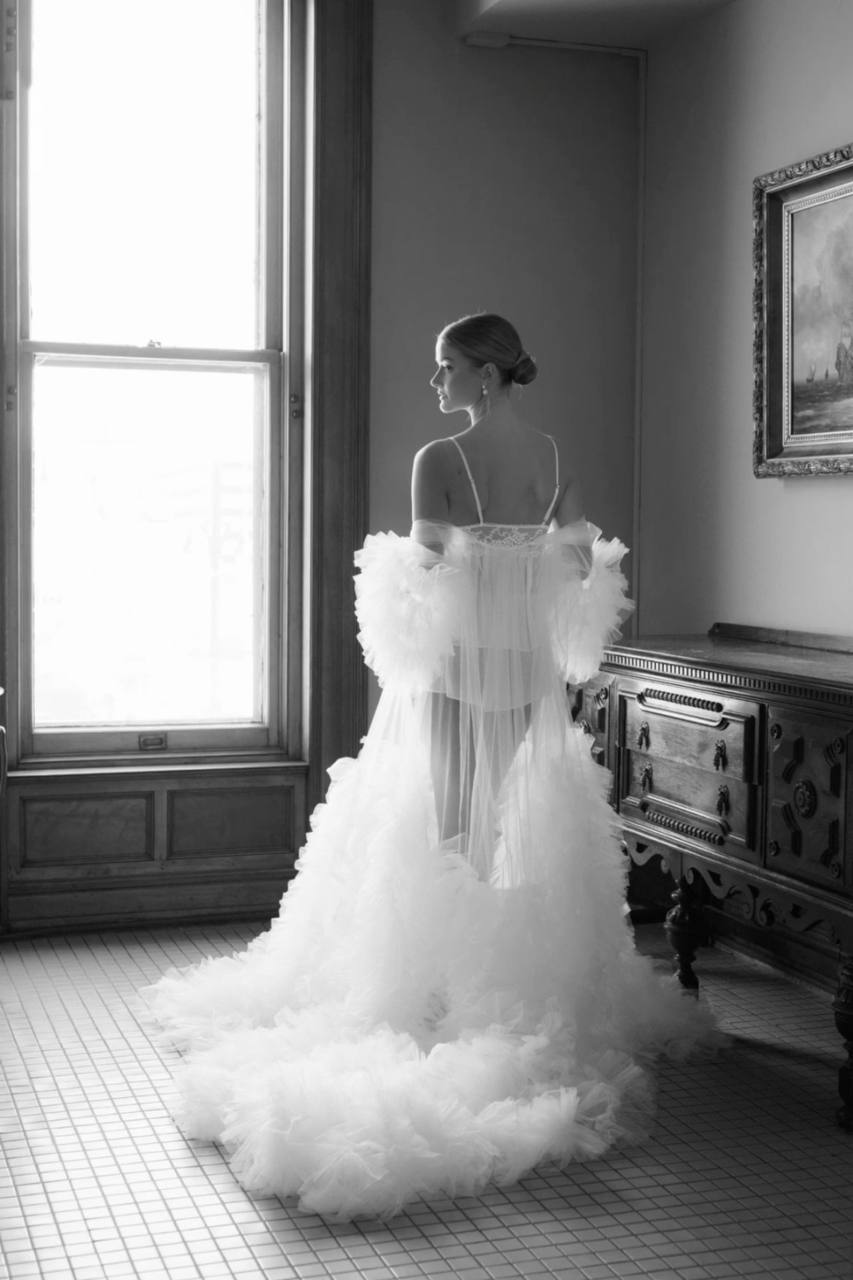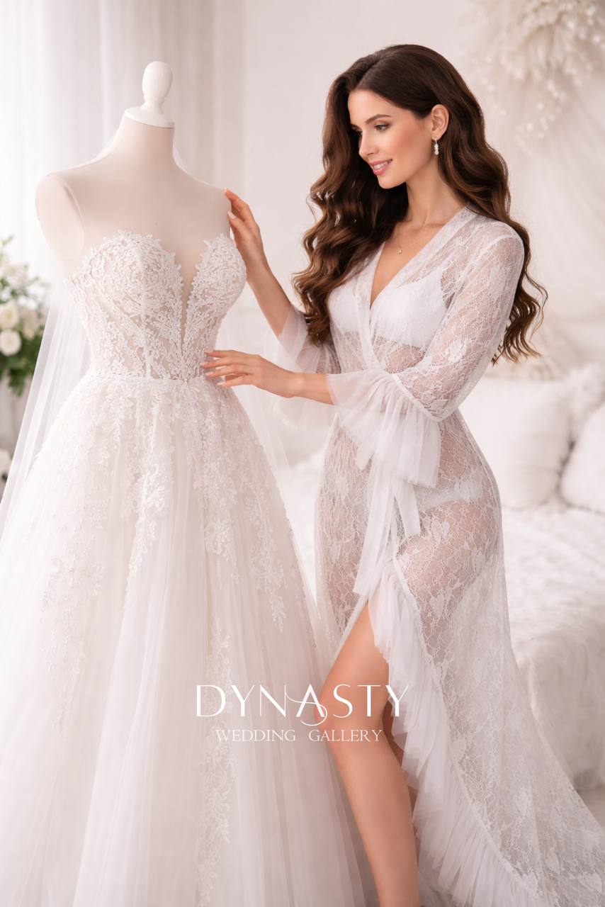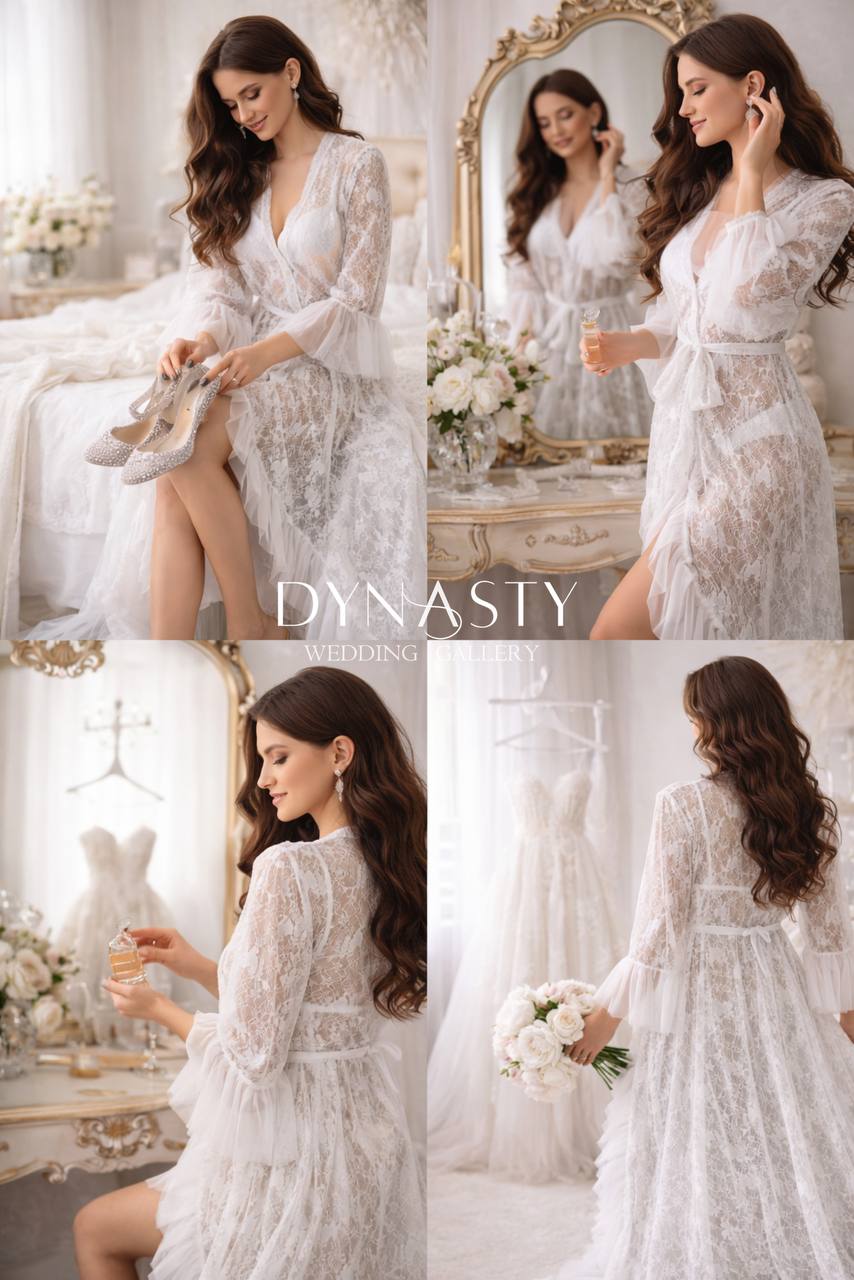 Легкий, як дотик кохання — цей халат створений для найніжнішого ранку у твоєму житті. У ньому кожен рух виглядає як кадр з розкішної bridal-історії