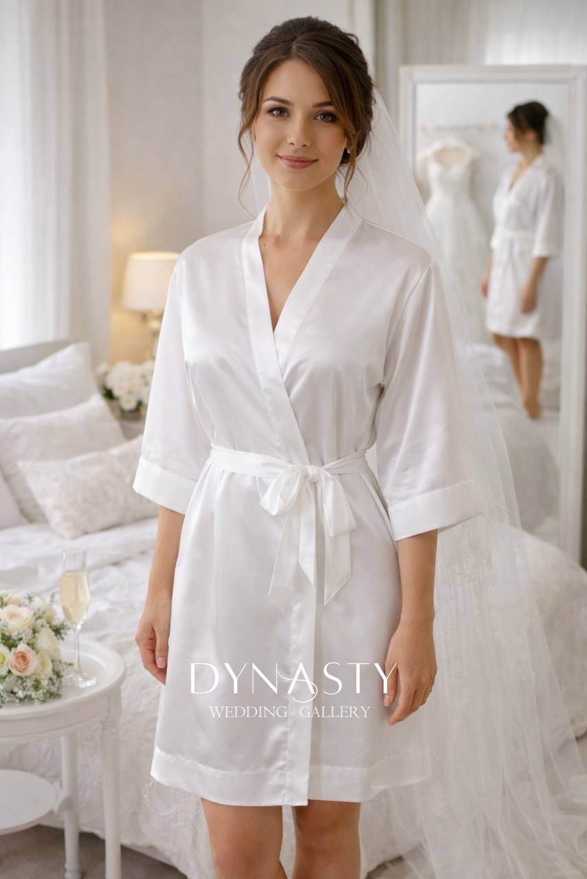 Халат для ранку нареченої, в якому ти відчуєш себе особливою з перших хвилин дня. Ніжний сатин, ідеальна посадка та персональна вишивка створюють той самий кадр, який залишиться з тобою назавжди.
