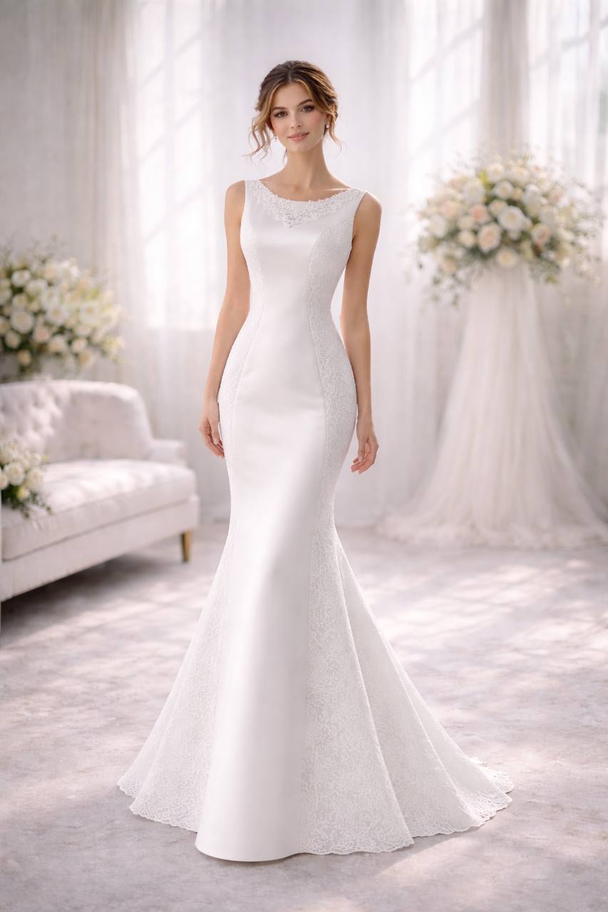 • Тканина: Королівський атлас/ Обʼємне квіткове мереживо 3D